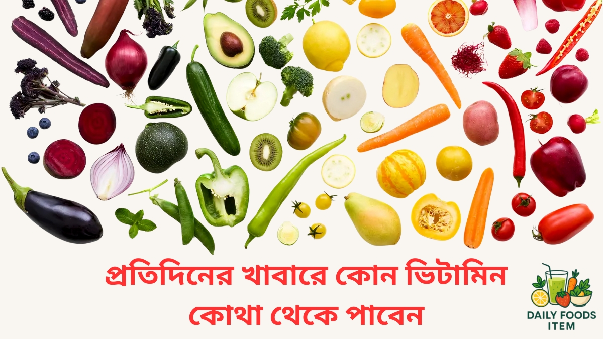 প্রতিদিনের খাবারে কোন ভিটামিন কোথা থেকে পাবেন . ভিটামিন আমাদের শরীরের জন্য অপরিহার্য। এটি রোগ প্রতিরোধ ক্ষমতা, চোখ, ত্বক, হাড়, এবং স্নায়ুতন্ত্রকে সক্রিয় রাখে। অনেকেই মনে করেন ভিটামিন মানেই ট্যাবলেট বা সাপ্লিমেন্ট। তবে প্রকৃতপক্ষে, আমাদের দৈনন্দিন খাবারেই প্রায় সব প্রয়োজনীয় ভিটামিন পাওয়া যায়। প্রতিদিনের খাবারে সঠিক ভিটামিন অন্তর্ভুক্ত করলে শরীরের সব কার্যকারিতা ঠিক থাকে।