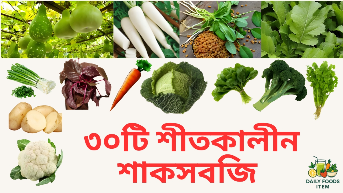 আজ আমরা বিস্তারিত জানব ৩০টি শীতকালীন শাকসবজি সম্পর্কে — তাদের নাম, উপকারিতা, ক্ষতিকর দিক এবং শরীরের জন্য কীভাবে উপকারী তা এক নজরে দেখব।